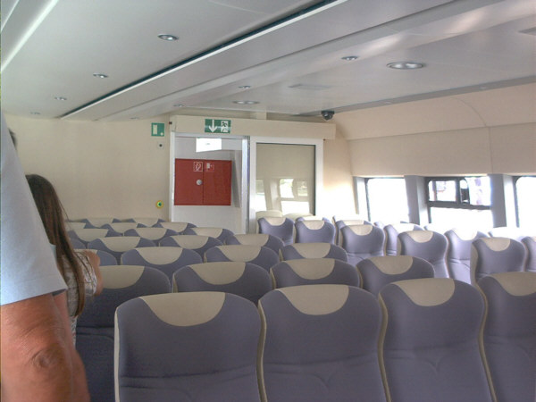 Der Bodensee - Katamaran von innen gesehen bei seinem Antrittsbesuch in Langenargen