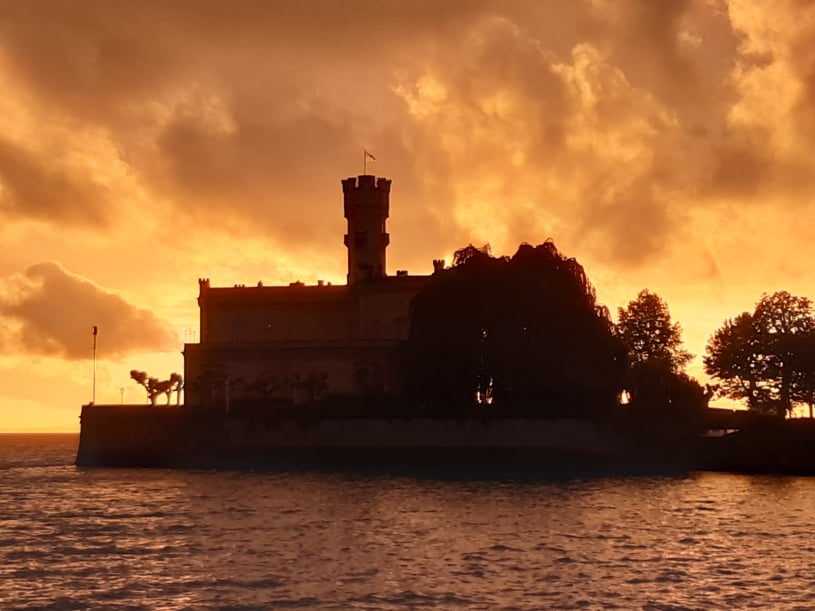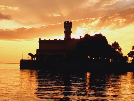 Unser Schloss Montfort steht gut sichtbar im Bodensee. Es beinhaltet ein Cafe, ein Restaurant und Veranstaltungsräume. Im Bild: Schloss Montfort in der Abendsonne