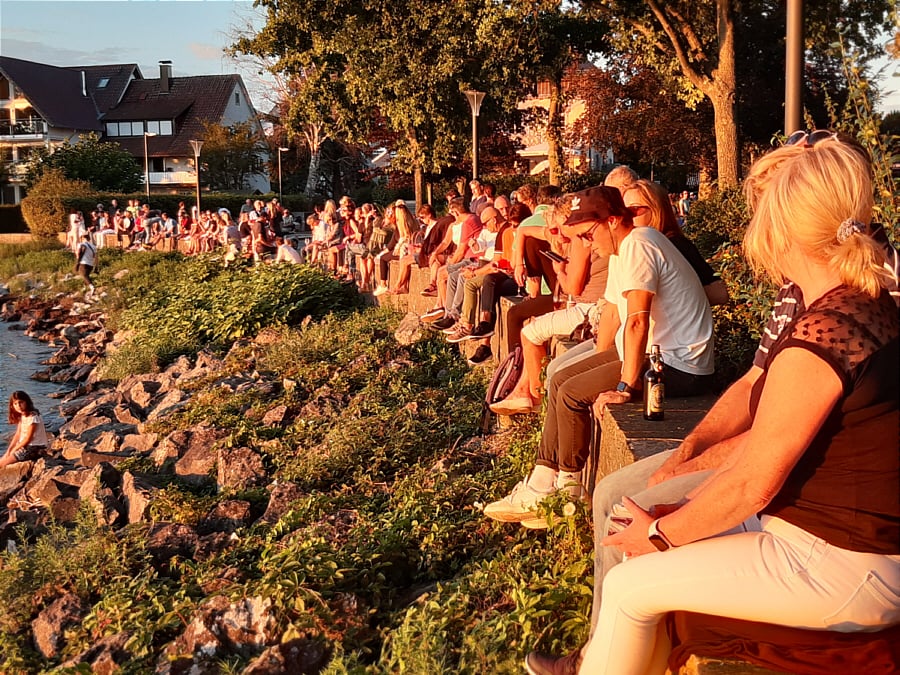 auch einmal den Sonnenuntergang am Schloss anschauen? Dann machen Sie es wie diese Personen und sitzen am Abend aufs "Mäuerle" beim Schloss.